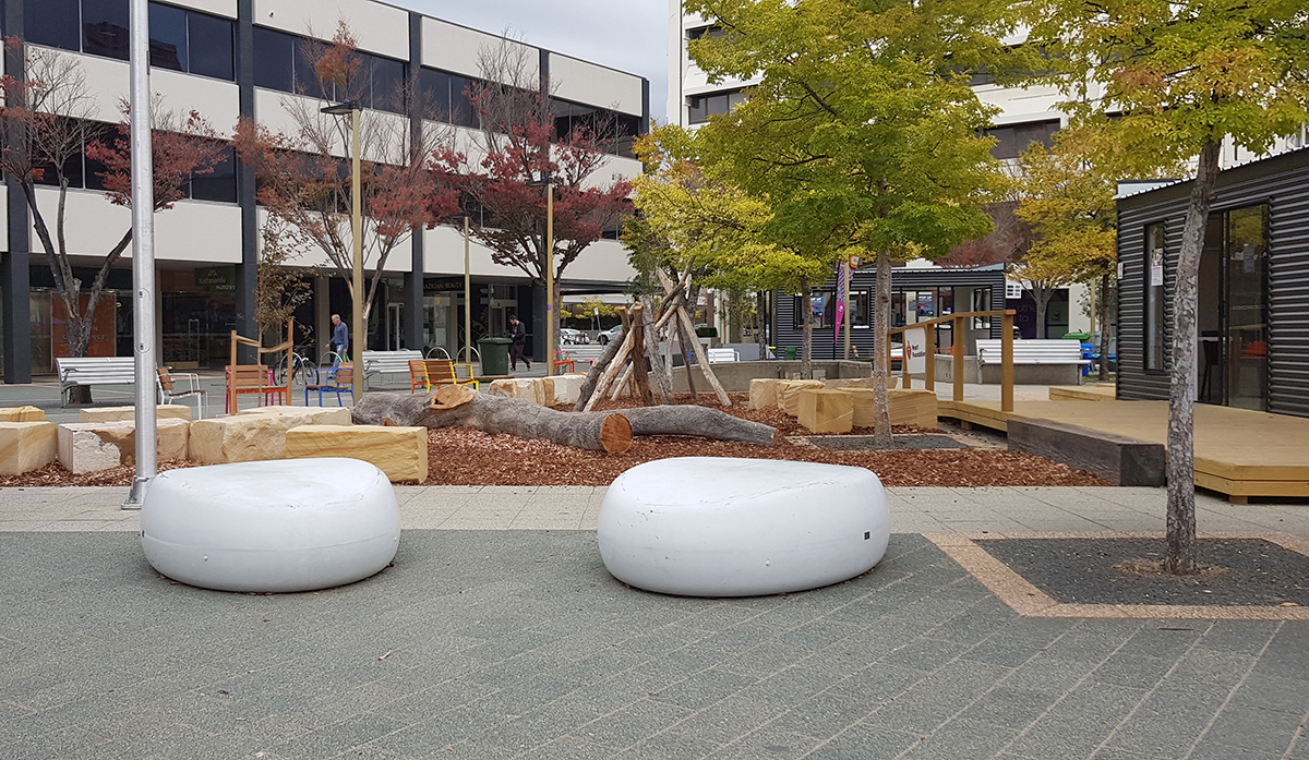 Used in Woden, Canberra’s CBD, the Pebbles have been set in an urban precinct with office buildings, footpaths and restaurants. They completely fit in this outdoor environment, giving people a chance to experience this unique stylish design.