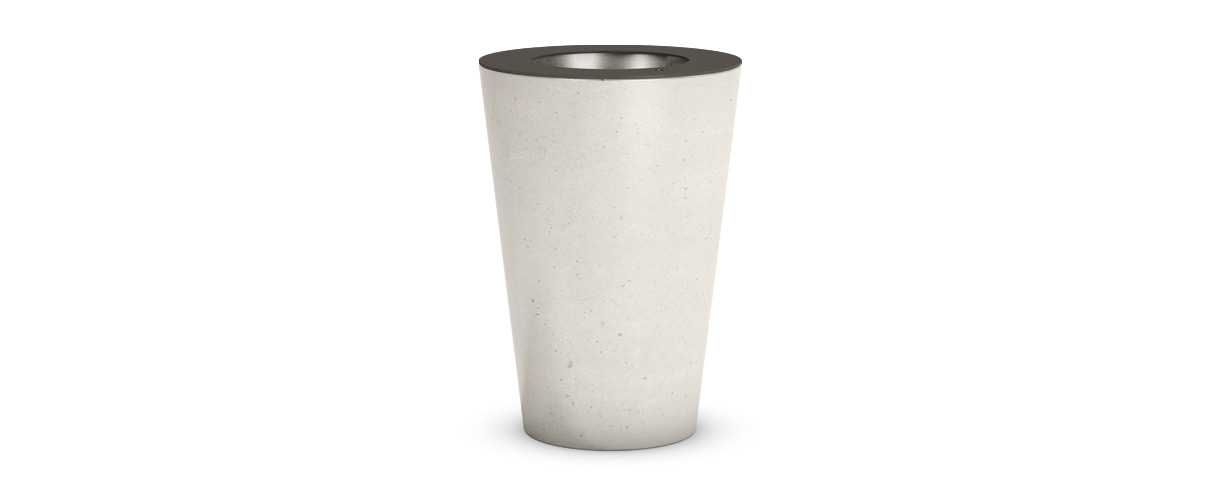 The Smooth Litter Bin are made of UHPC (Ultra High Performance Concrete). The seat is internally steel reinforced with a steel structure. The lid is made of 30/10 thick steel sheet, provided with a lock with triangular key. Within it there is a 6/10 thick zinc-coated steel bin with 2 slotted holes that serve as handles.